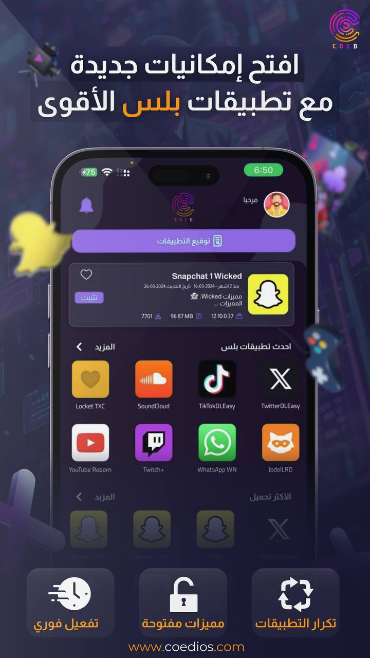 استمتع بتجربة فريدة مع تطبيقات البلس من متجر Coedios، واستفد من المزايا المتقدمة التي نقدمها لتحسين استخدامك لجهاز الأيفون.